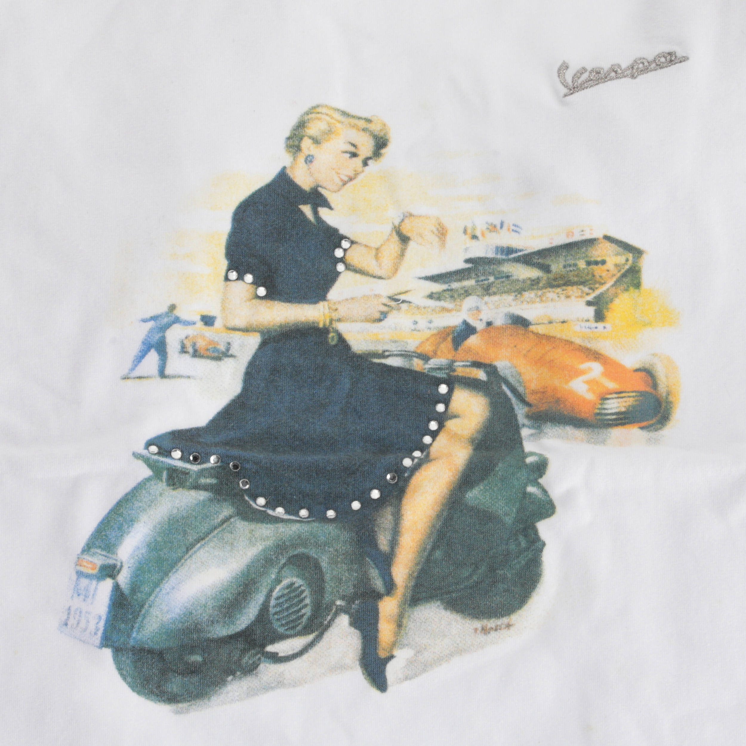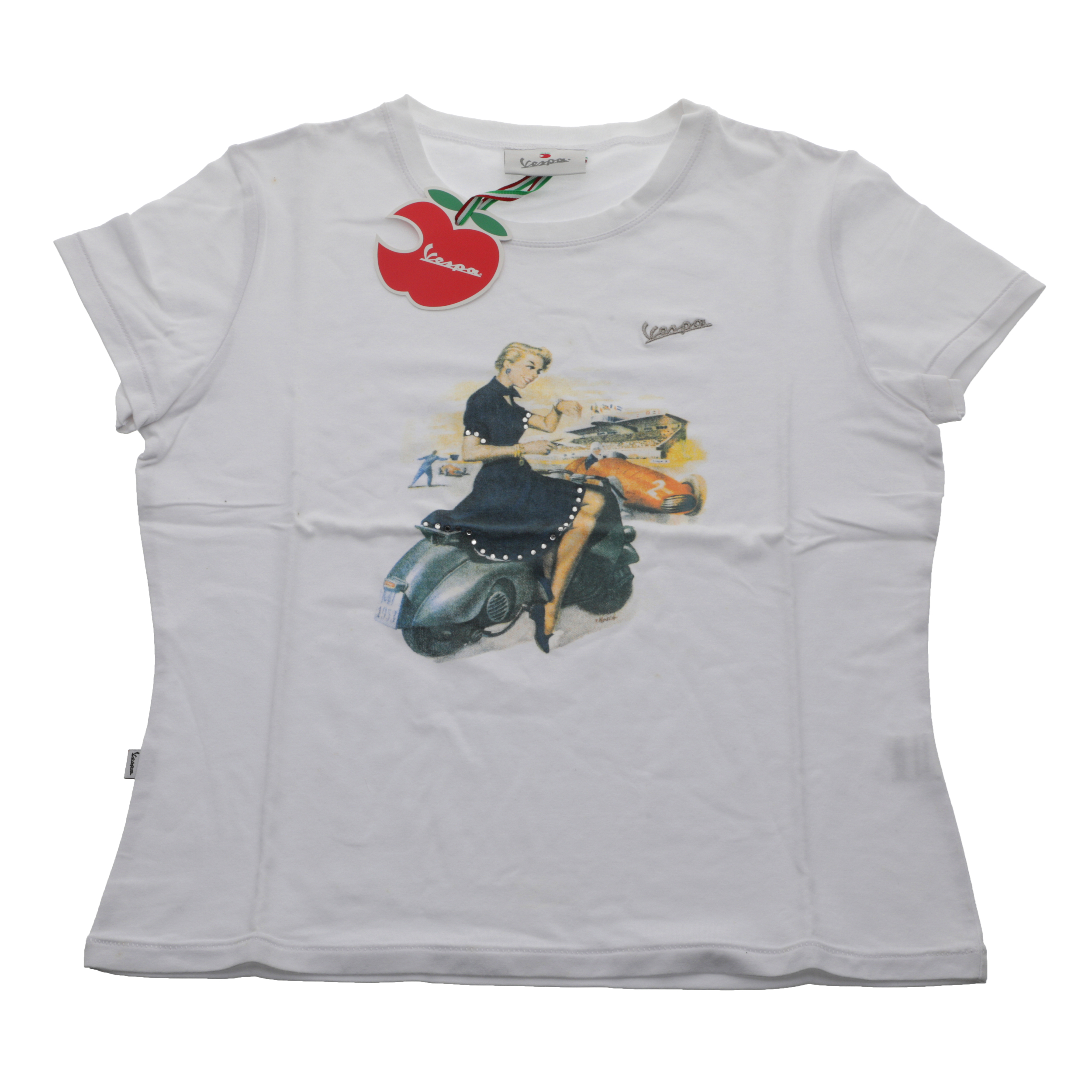 GENUINE PIAGGIO T-SHIRT VESPA PIN UP 2 LADY WHITE XL NEW OEM 605120M050